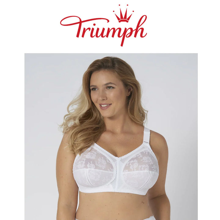 This iconic Doreen bra has been the world's leading non-wired bra for over 40 years. Thanks to its timeless innovation and construction, the bra offers a perfect fit and optimal support for women with more cleavage. The sectioned design presents a lifted shape while the larger straps help support your bust, spreading the weight over a wider area for a smooth fit. The back fastenings and depth are graduated with the size of the garment Triumph Doreen Sizes over a D, the back gets deeper and a 3 hook and eye is used.
